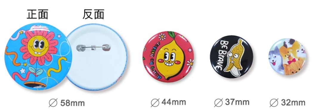 直徑32mm圓, 直徑37mm圓, 直徑44mm圓, 直徑58mm圓