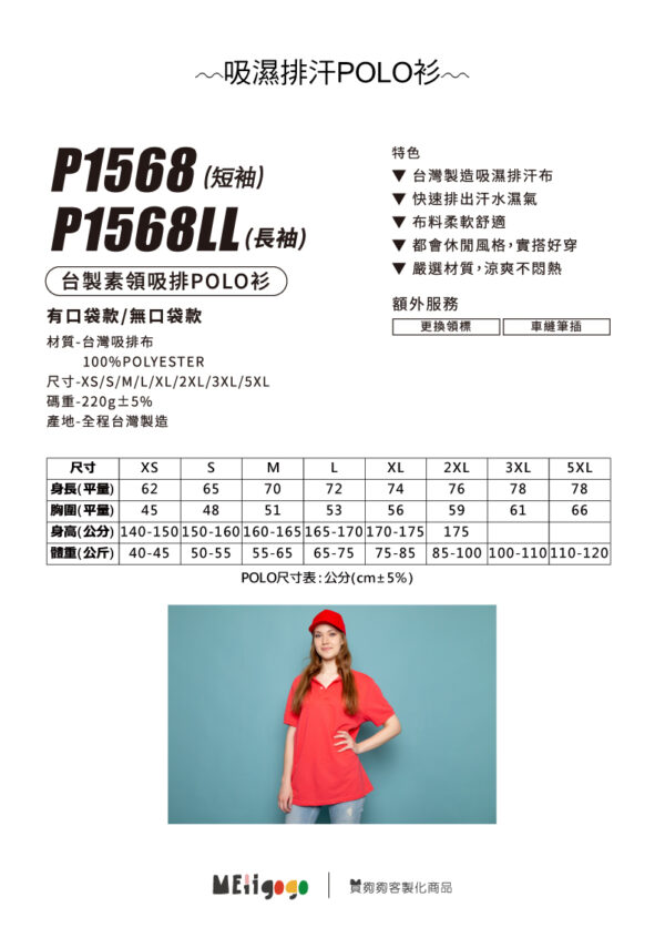 P1568(短袖) /P1568LL(長袖)-吸濕排汗POLO衫
