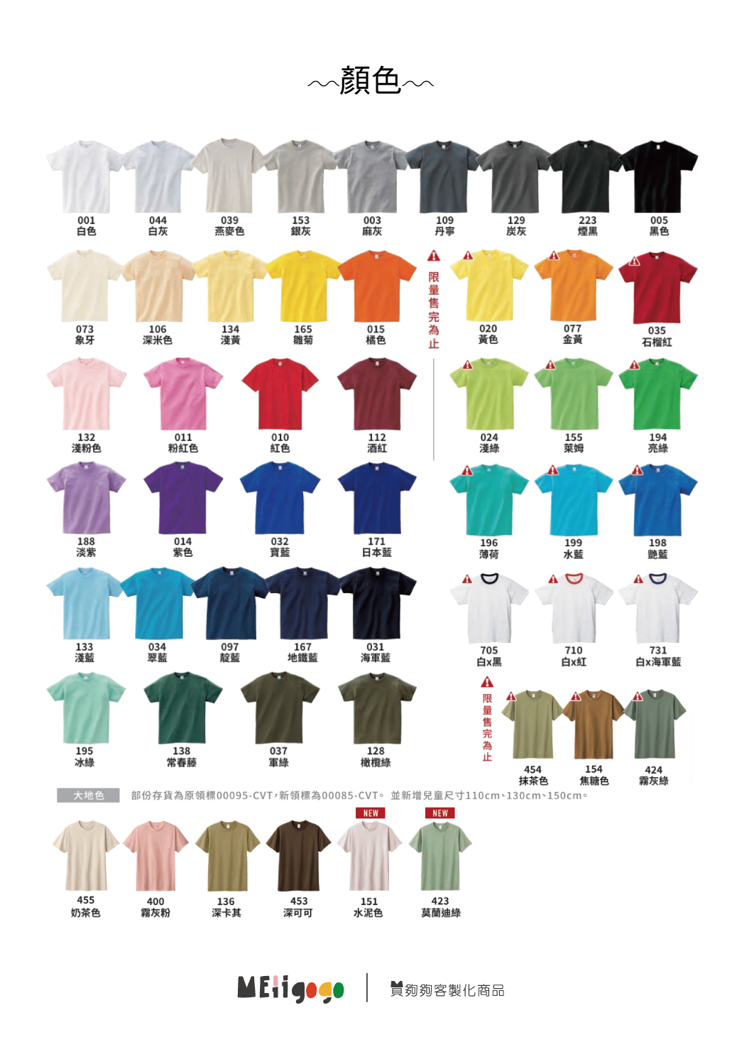 | 尺寸 | 100, 110, 120, 130, 140, 150, WL, WM, XS, S, M, L, XL, 2XL, 3XL, 5XL |